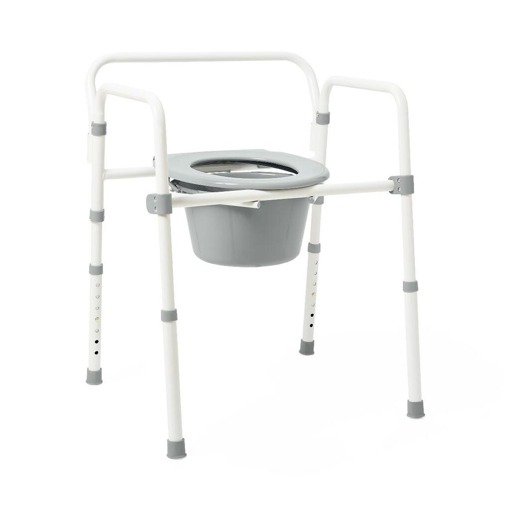 - Comes complete with 12 qt. commode bucket with carry handle, cover and splash shield